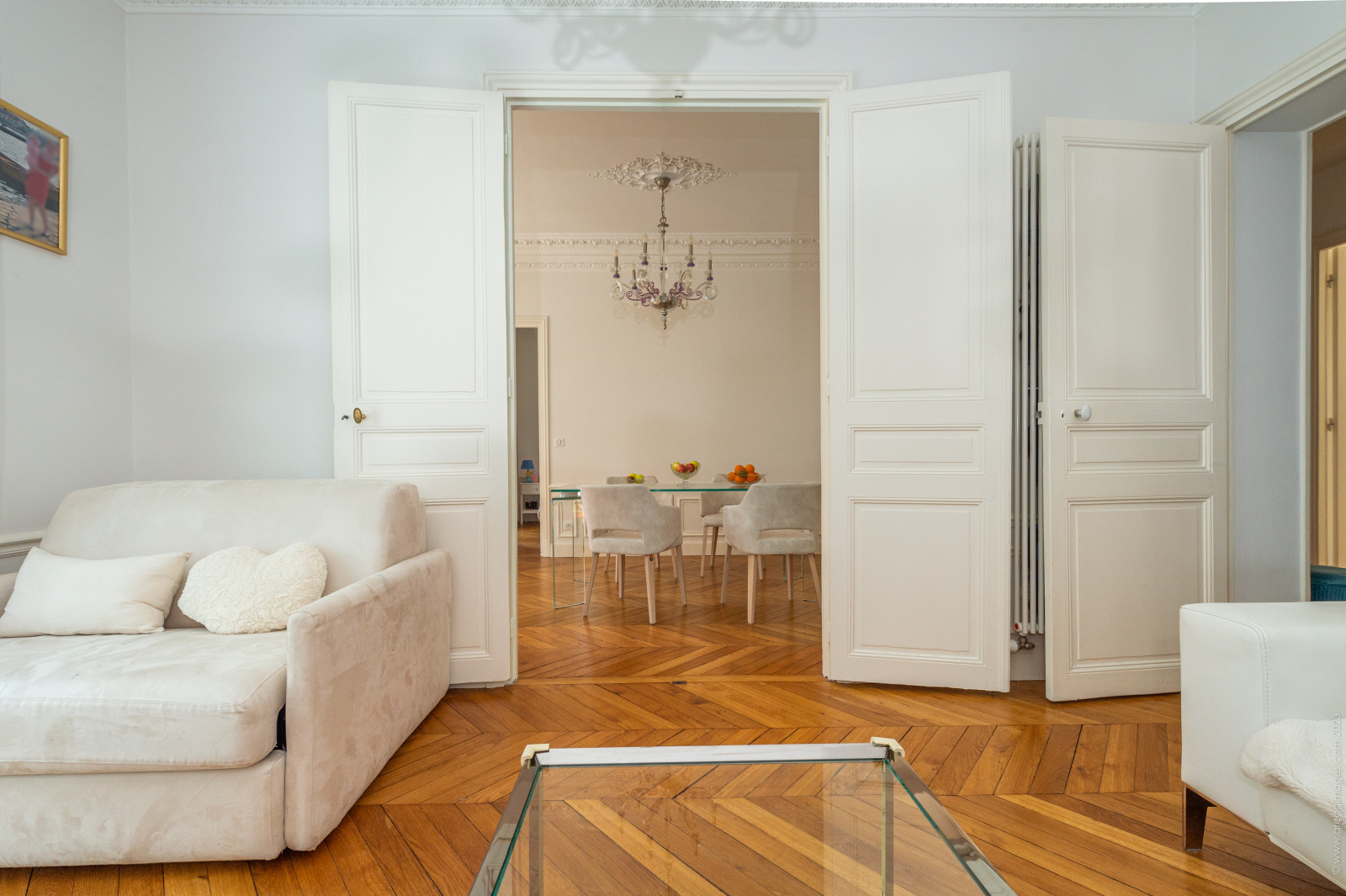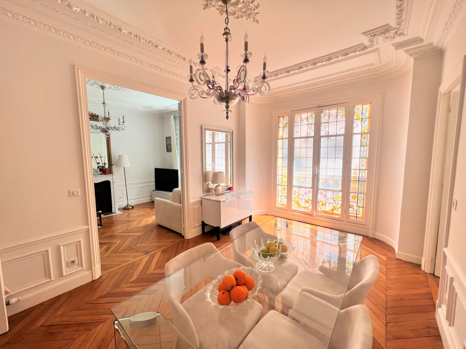 EXCLUSIVITE - Jaconelli Immobilier vous propose un magnifique appartement Haussmannien de 4 pièces principales d'environ 70m² habitables dans lequel vous retrouverez tous les codes des nobles demeures parisiennes: parquet en Point de Hongrie, cheminée en marbre, moulures aux plafonds et sur les murs, hauteur sous plafond d'envion 2m90. Entièrement refait à neuf, il vous sera très aisé de vous projeter dans ce logement modulable situé au 2ème étage d'une petite copropriété. Il se compose actuellement d'une entrée en étoile, d'un salon avec cheminée et balcon, d'une salle à manger avec balconnet et porte fenètre avec vitrail décoré, (possibilité de faire un double séjour d'environ 30m²), d'une cuisine indépendante aménagée et équipée, de deux chambres spacieuses (possibilité de faire une 3ème chambre) dont une avec balcon, d'une salle d'eau en marbre, d'un wc indépendant avec lave-mains et d'une cave en sous-sol. L'emplacement est idéal puisque cet appartement se situe dans une rue calme adjacente à la Place de la Nation, les commerces et métros (lignes 1, 2, 6, 9 + RER A) sont à seulement une minute à pied. Contactez-nous rapidement pour visiter ce bijou à deux pas de notre agence.
