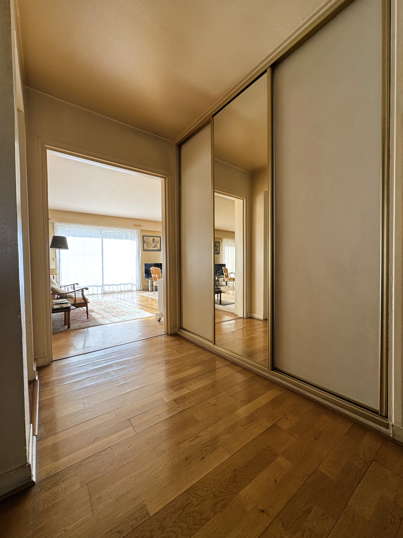 Situé à quelques minutes à pied de la place de la Nation (lignes 1, 2, 6, 9 et RER A) et à proximité de la station Montgallet, dans une rue calme à sens unique, ce bien bénéficie d’un emplacement particulièrement recherché, à proximité immédiate des commerces, transports et établissements scolaires. Au 4ème étage d’une copropriété de standing bien entretenue de 1973, sécurisée avec gardien et ascenseur, il développe une surface de 131 m² loi Carrez (148,65 m² au sol) et bénéficie d’une double exposition Est-Ouest. Issu de la réunion de deux appartements, l’ensemble offre aujourd’hui de beaux volumes et une organisation idéale pour une vie familiale confortable. L’entrée dessert un double séjour lumineux ouvrant sur balcon. La configuration actuelle comprend trois chambres, ainsi qu’un second salon pouvant facilement devenir une quatrième chambre, un bureau ou un espace de réception supplémentaire selon les besoins. Deux cuisines, trois salles de bains et trois WC complètent l’ensemble, offrant un confort rare pour un appartement familial. Les différents balcons, totalisant 17,65 m², permettent de profiter d’espaces extérieurs agréables, avec une vue dégagée et calme côté cour et une ouverture sur le ciel côté rue, peu passante et à sens unique. Le plan offre une grande souplesse d’aménagement, permettant d’adapter les espaces selon différents projets de vie. Le bien a été très bien entretenu par les propriétaires et nécessitera des travaux de rénovation, offrant ainsi l’opportunité de repenser les espaces et de le personnaliser selon ses envies. L’ensemble est complété par deux caves ainsi que deux places de parking dans l’immeuble, accessibles directement par ascenseur. Diagnostics : DPE D pour la partie principale et DPE E pour le second lot. Un bien rare dans le secteur, offrant lumière, volumes et qualité de vie, à proximité immédiate de la Place de la Nation.