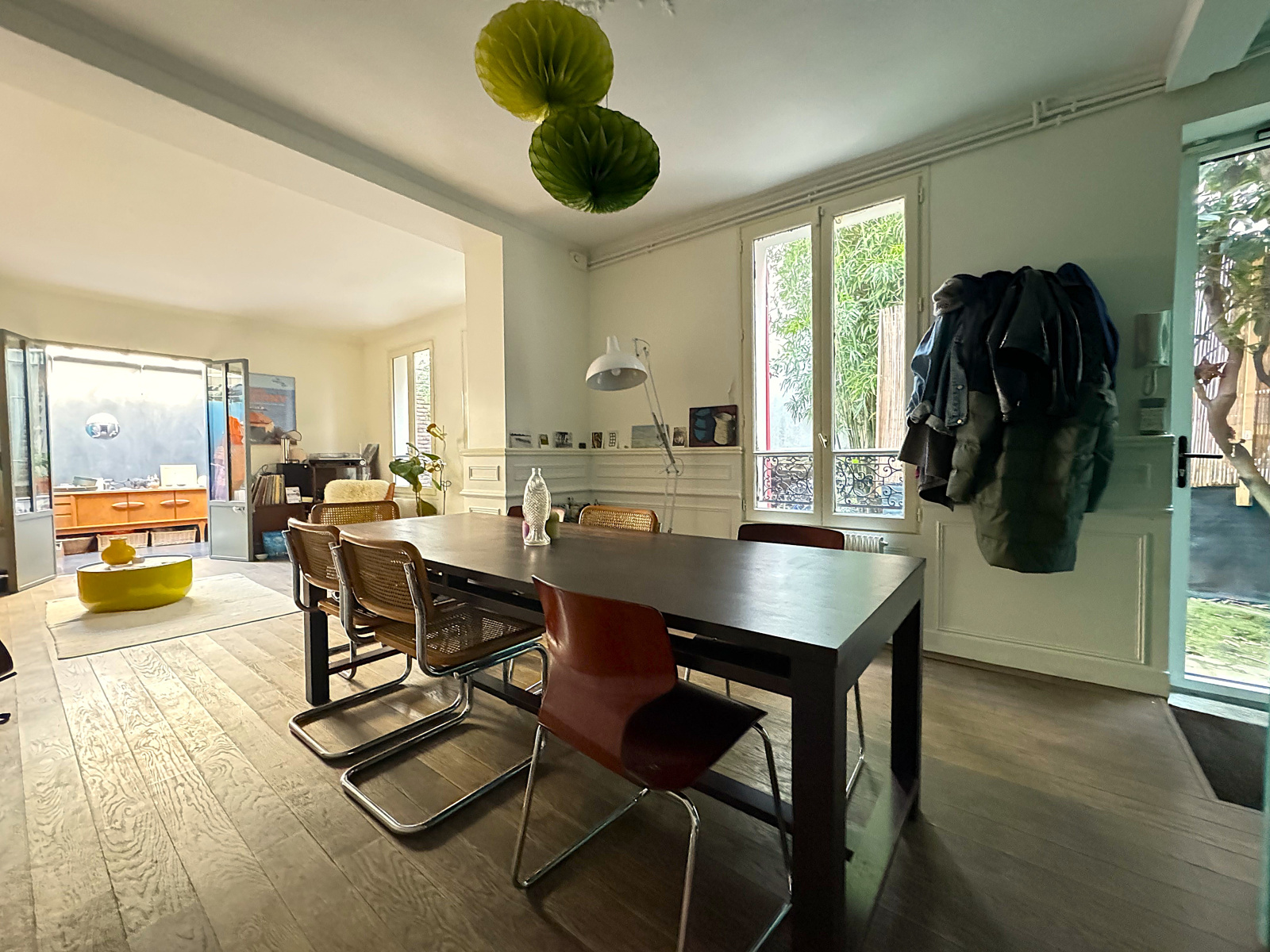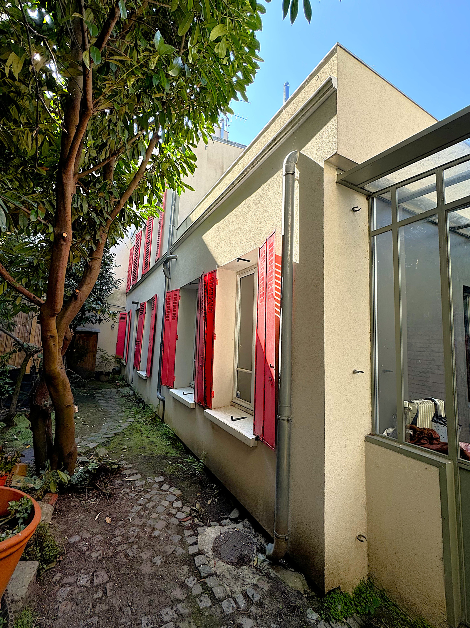 A l'arrière d'un immeuble d’habitation, en copropriété et au calme absolu, JACONELLI Immobilier vous propose en exclusivité un véritable trésor caché, havre de paix et de sérénité ou vous vivrez en toute quiétude. Cette maison d'environ 73,77m² habitables (64,87m² Carrez, et 96,79m² utiles) récemment rénovée vous offre un double séjour avec cuisine aménagée et équipée donnant sur cour végétalisée et véranda (de 8,90m² non comptabilisés dans la surface Carrez), trois chambres dont deux avec mezzanine (de 14,88m² au sol non comptabilisés dans la surface Carrez) et une avec sa propre douche, un bureau, une salle de bains avec WC, un dressing situé en sous-sol et une terrasse pleinement ensoleillée d'environ 15m² exposée sud-ouest ! Située à seulement 5 minutes à pied du métro Mairie des Lilas (ligne 11) et à 3 minutes à pied du Parc Lucie Aubrac, vous bénéficierez de toutes les commodités à proximité (écoles, commerces, clinique et maternité des Lilas, Parc Lucie Aubrac). Devant la maison se trouve également un jardin privatif de 32m² (13m X 2m50). Contactez-nous très rapidement pour profiter de cette maison pleine de charme et d’atouts.